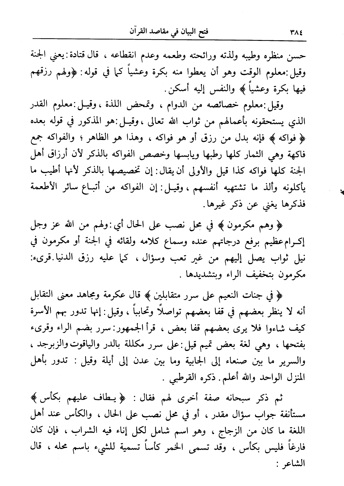 حسن منظره وطيبه ولذته ورائحته وطعمه وعدم انقطاعه، قال قتادة: يعني الجنة وقيل: معلوم الوقت وهو أن يعطوا منه بكرة وعشياً كما في قوله: (ولهم رزقهم فيها بكرة وعشياً) والنفس إليه أسكن.