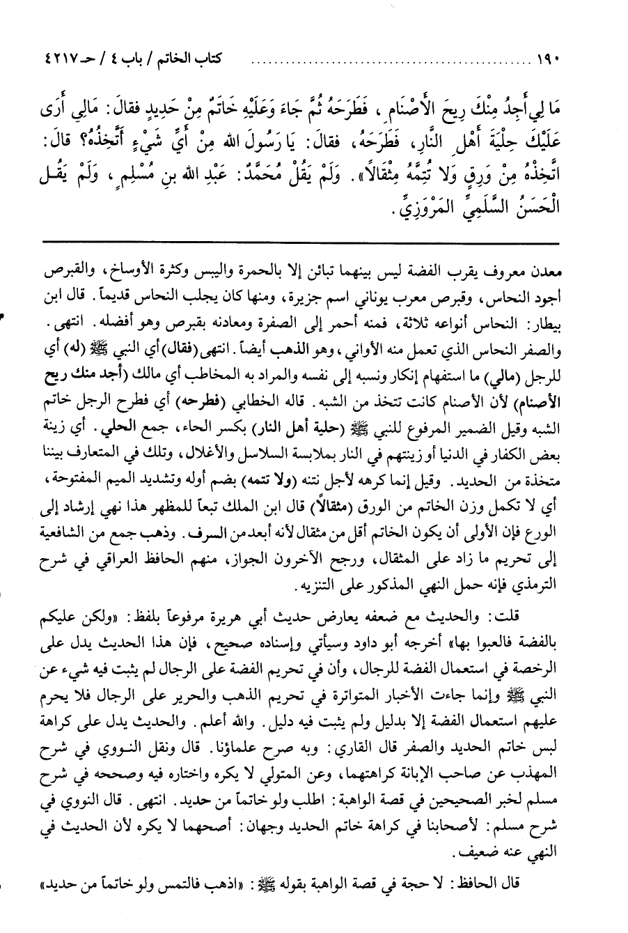 قَالَ النَّوَوِيُّ فِي شَرْحِ مُسْلِمٍ لِأَصْحَابِنَا فِي كَرَاهَةِ خَاتَمِ الْحَدِيدِ وَجْهَانِ أَصَحُّهُمَا لَا يُكْرَهُ لِأَنَّ الْحَدِيثَ فِي النَّهْيِ عَنْهُ ضَعِيفٌ
