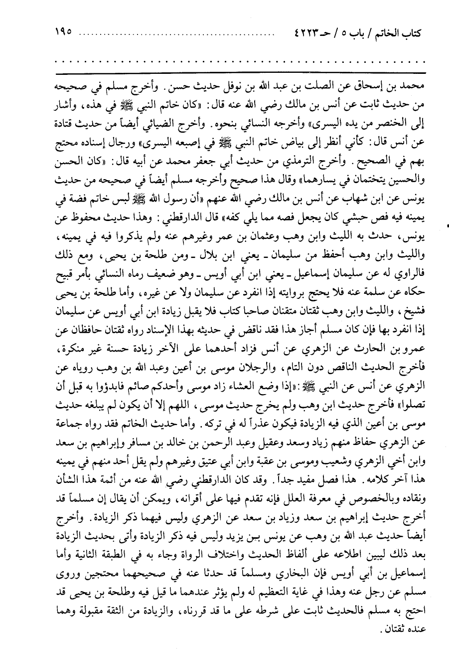 وَقَدْ كَانَ الدَّارَقُطْنِيُّ رَضِيَ اللَّهُ عَنْهُ مِنْ أَئِمَّةِ هَذَا الشَّأْنِ وَنُقَّادِهِ وَبِالْخُصُوصِ فِي مَعْرِفَةِ الْعِلَلِ فَإِنَّهُ تَقَدَّمَ فِيهَا عَلَى أَقْرَانِهِ وَيُمْكِنُ أَنْ يُقَالَ إِنَّ مُسْلِمًا قَدْ أَخْرَجَ حَدِيثَ إِبْرَاهِيمَ بْنِ سَعْدٍ وَزِيَادِ بْنِ سَعْدٍ عَنِ الزُّهْرِيِّ وَلَيْسَ فِيهِمَا ذِكْرُ الزِّيَادَةِ
