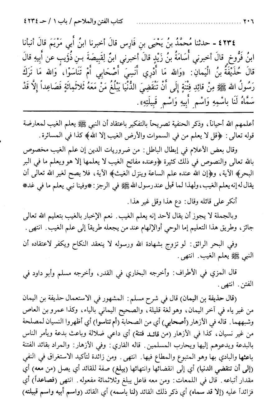 [4243] (قَالَ حُذَيْفَةُ بْنُ الْيَمَانِ) قَالَ فِي شَرْحِ مُسْلِمٍ الْمَشْهُورُ فِي الِاسْتِعْمَالِ حُذَيْفَةُ بْنُ الْيَمَانِ مِنْ غَيْرِ يَاءٍ فِي آخِرِ الْيَمَانِ وَهُوَ لُغَةٌ قَلِيلَةٌ وَالصَّحِيحُ الْيَمَانِيُّ بِالْيَاءِ وَكَذَا عَمْرُو بْنُ العاصِ وَشِبْهُهُمَا