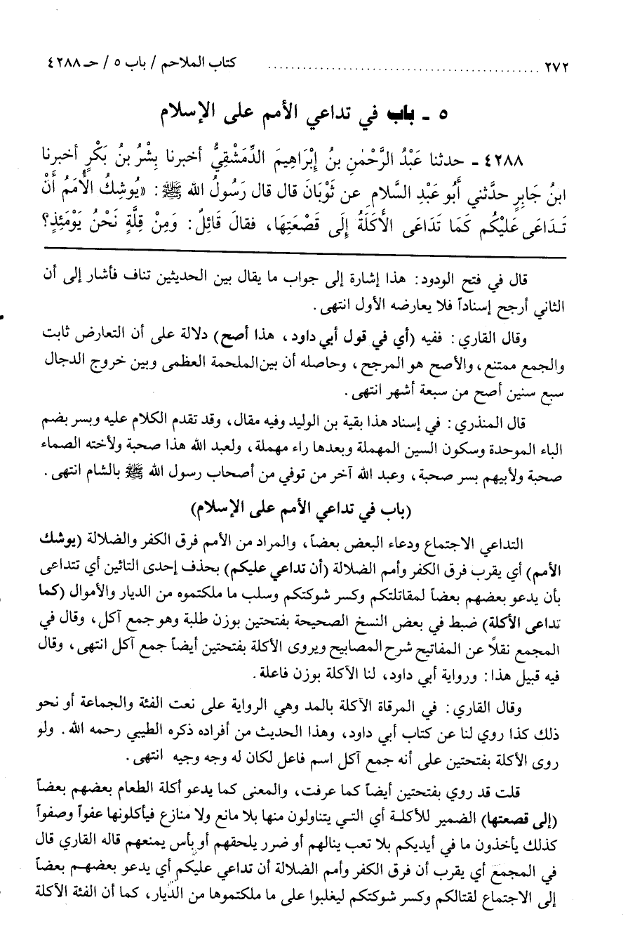 [4297] التَّدَاعِي الِاجْتِمَاعُ وَدُعَاءُ الْبَعْضِ بَعْضًا وَالْمُرَادُ مِنَ الْأُمَمِ فِرَقُ الْكُفْرِ وَالضَّلَالَةِ