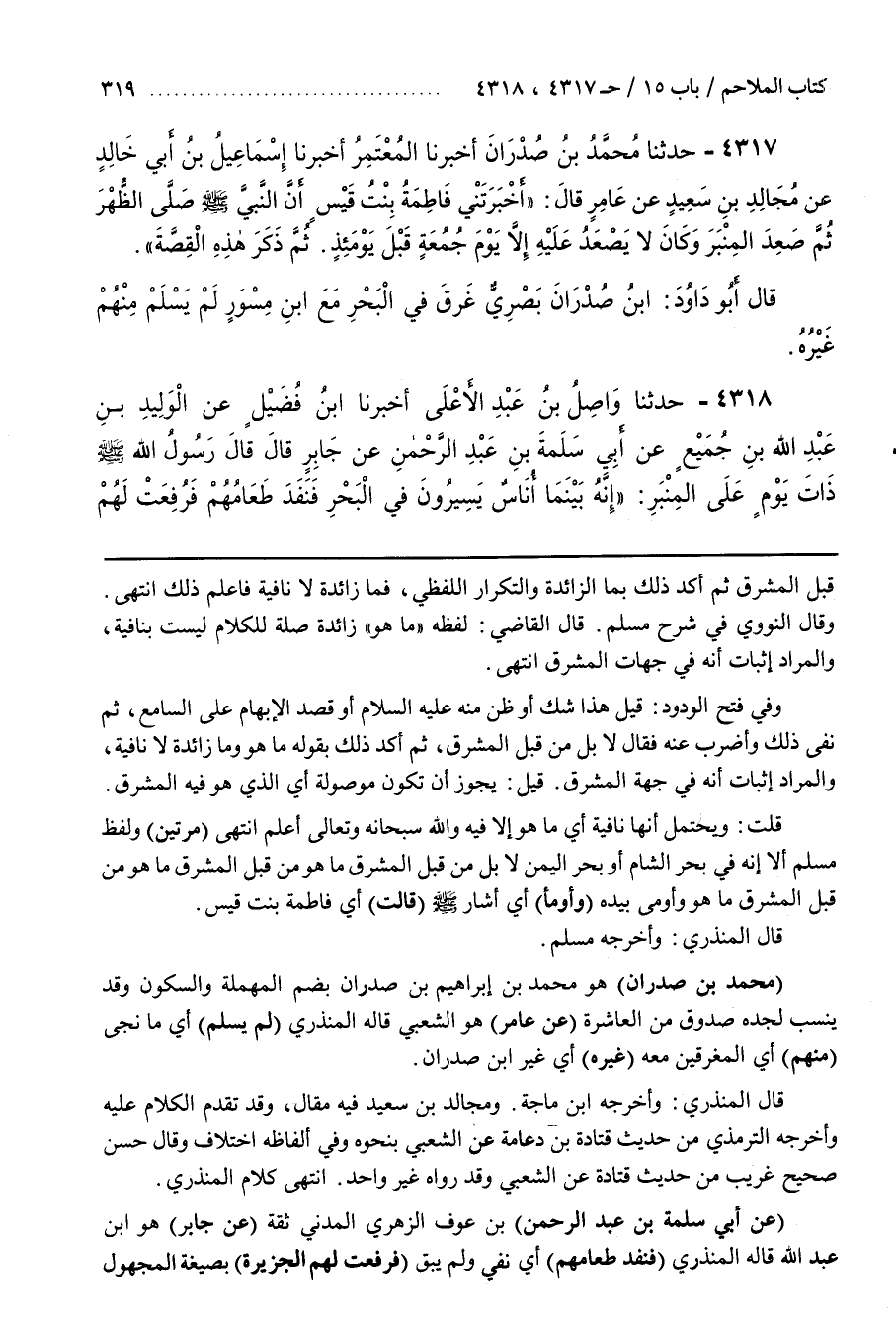 [4327] (مُحَمَّدُ بْنُ صُدْرَانَ) هُوَ مُحَمَّدُ بْنُ إِبْرَاهِيمَ بْنِ صُدْرَانَ بِضَمِّ الْمُهْمَلَةِ وَالسُّكُونِ وَقَدْ يُنْسَبُ لِجَدِّهِ صَدُوقٌ مِنَ الْعَاشِرَةِ (عَنْ عَامِرٍ) هُوَ الشَّعْبِيُّ قَالَهُ الْمُنْذِرِيُّ (لَمْ يسلم) أي ما نجى (مِنْهُمْ) أَيِ الْمُغْرَقِينَ مَعَهُ (غَيْرُهُ) أَيْ غَيْرُ بن صدران