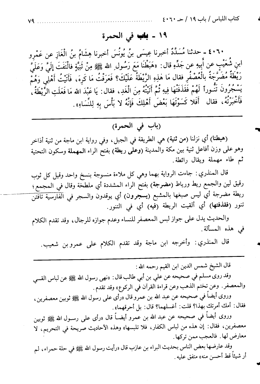 ــــــــــــQقال الشيخ بْن الْقَيِّم رَحِمَهُ اللَّه وَقَدْ رَوَى مُسْلِم فِي صَحِيحه عَنْ عَلِيّ بْن أَبِي طَالِب قَالَ نَهَى رَسُول اللَّه صَلَّى اللَّه عَلَيْهِ وَسَلَّمَ عَنْ لِبَاس الْقِسِّيّ وَالْمُعَصْفَر