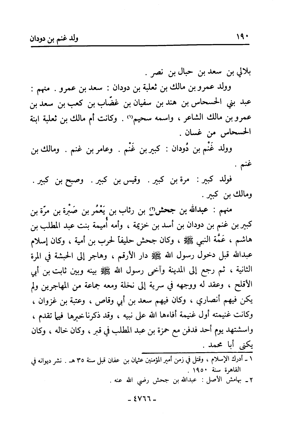 منهم: عبد الله بن جحش [2] بن رئاب بن يعمر بن صبرة بن مرة بن كبير بن غنم بن دودان بن أسد بن خزيمة،