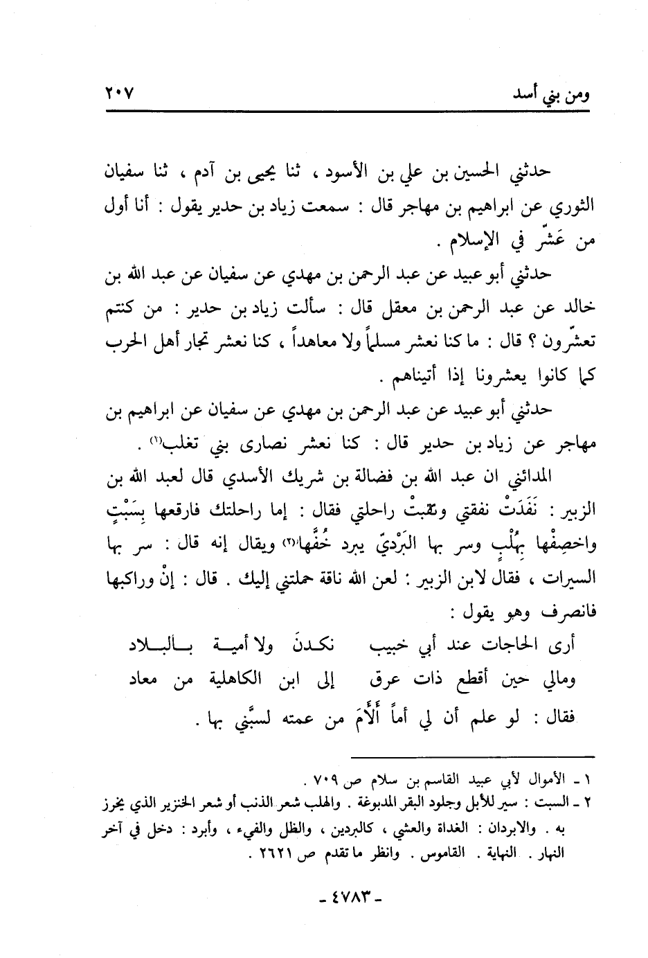 حدثني أبو عبيد عن عَبْد الرَّحْمَنِ بْن مَهْدِيٍّ عَنْ سُفْيَان عَنْ إِبْرَاهِيم بْن مهاجر عن زياد بْن حدير قال: كنا نعشر نصارى بني تغلب [1] .