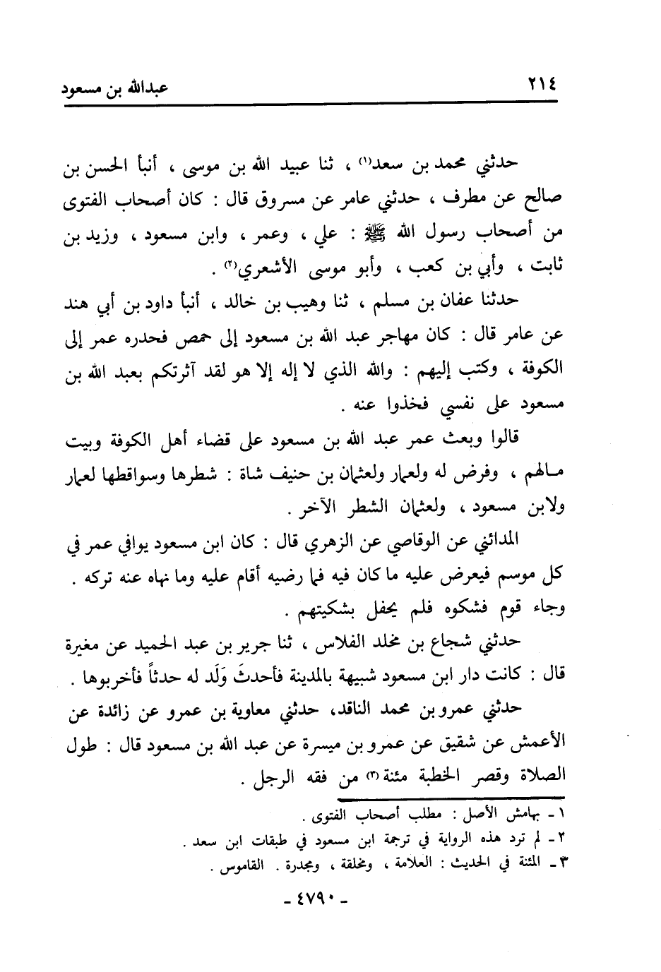 [2] لم ترد هذه الرواية في ترجمة ابن مسعود في طبقات ابن سعد.