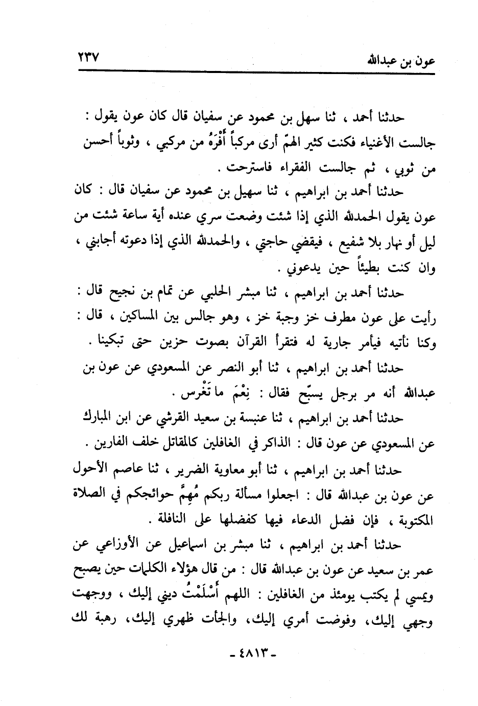 حدثنا أحمد، ثنا سهل بن محمود عن سفيان قال كان عون يقول: