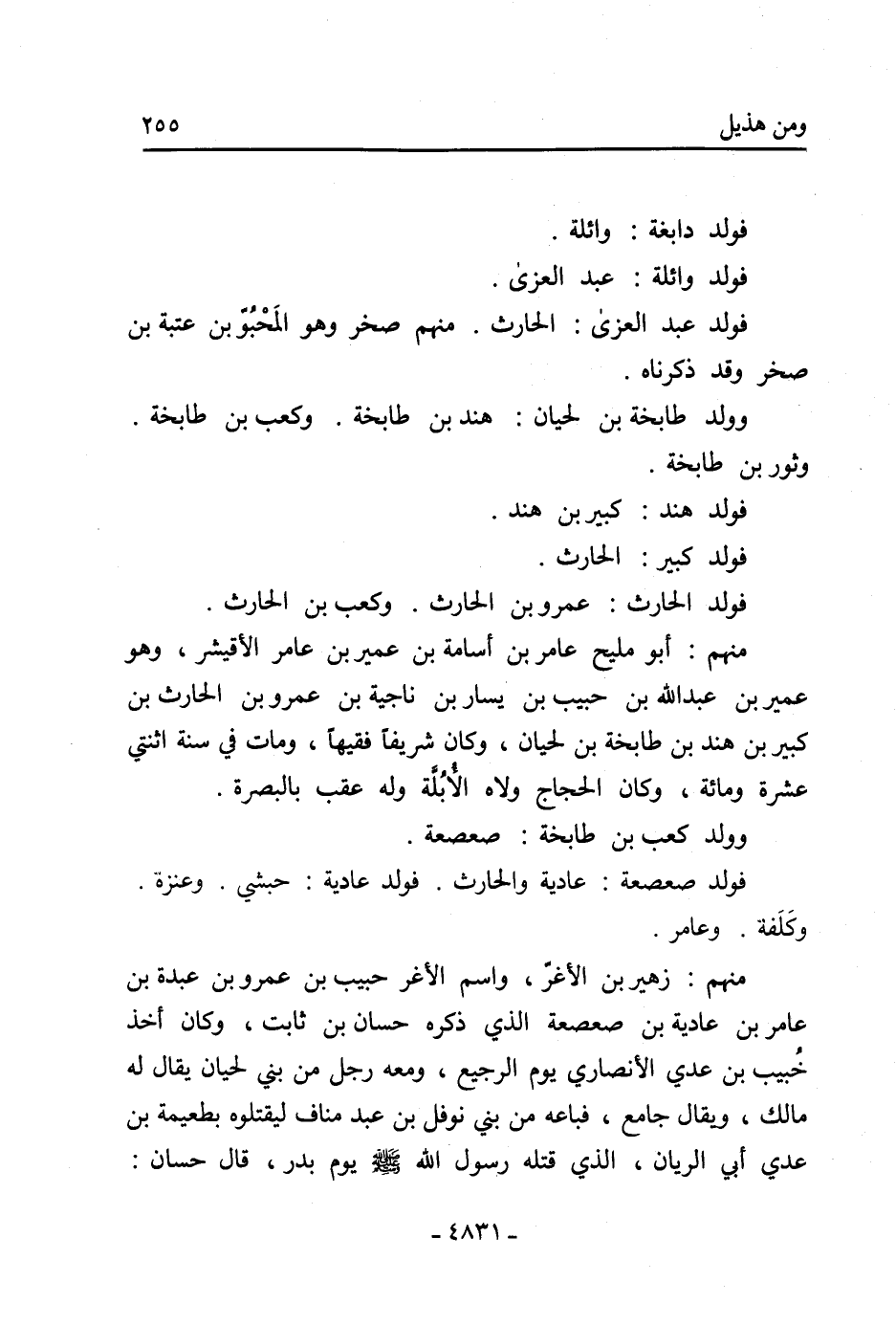 منهم: زهير بن الأغر، واسم الأغر حبيب بن عمرو بن عبدة بن عامر بن عادية بن صعصعة الذي ذكره حسان بن ثابت، وكان أخذ خبيب بن عدي الأنصاري يوم الرجيع، ومعه رجل من بني لحيان يقال له مالك، ويقال جامع، فباعه من بني نوفل بن عبد مناف ليقتلوه بطعيمة بن عدي أبي الريان، الذي قتله رَسُولُ اللَّهِ صَلَّى اللَّهُ عَلَيْهِ وَسَلَّمَ يَوْمَ بدر، قال حسان: