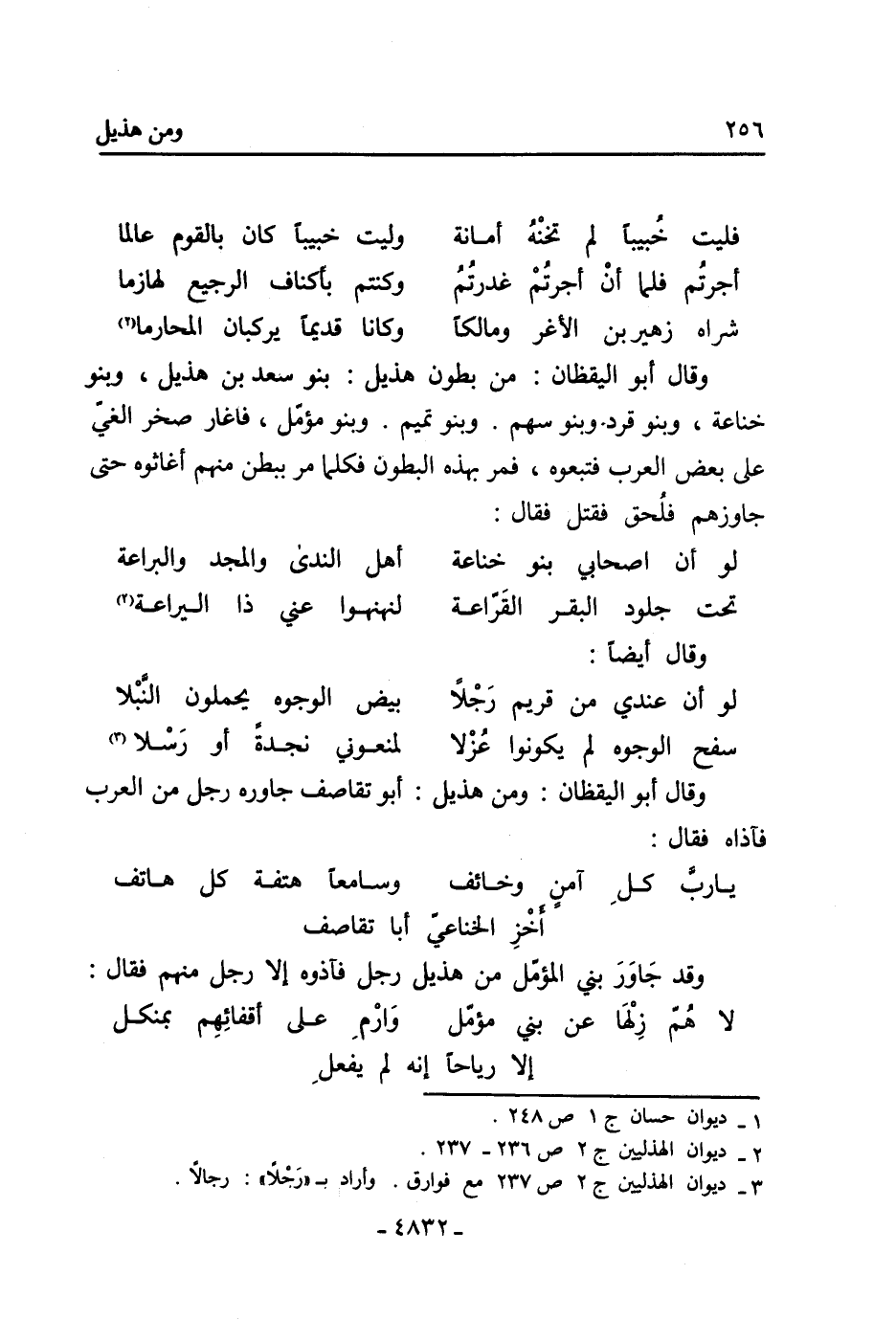 [3] ديوان الهذليين ج 2 ص 237 مع فوارق. وأراد ب «رجلا» : رجالا.
