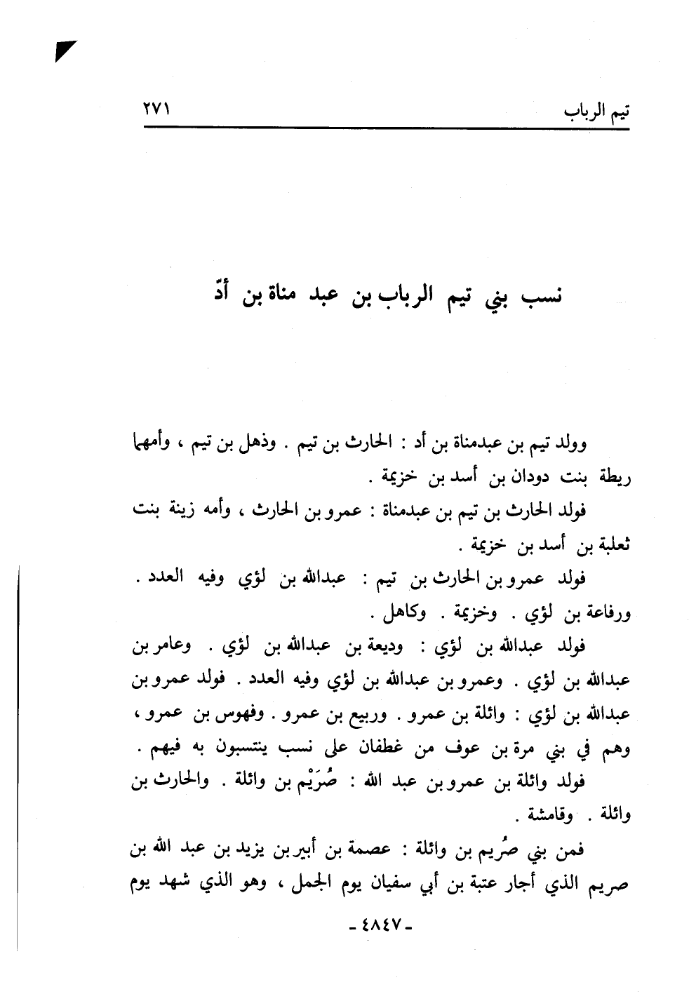 نسب بني تيم الرباب بن عبد مناة بن أد