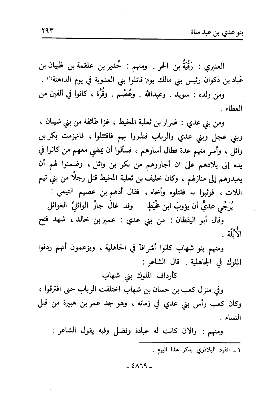 وفي منزل كعب بن حسان بن شهاب اختلفت الرباب حتى افترقوا، وكان كعب رأس بني عدي في زمانه، وهو جد عمر بن هبيرة من قبل النساء.