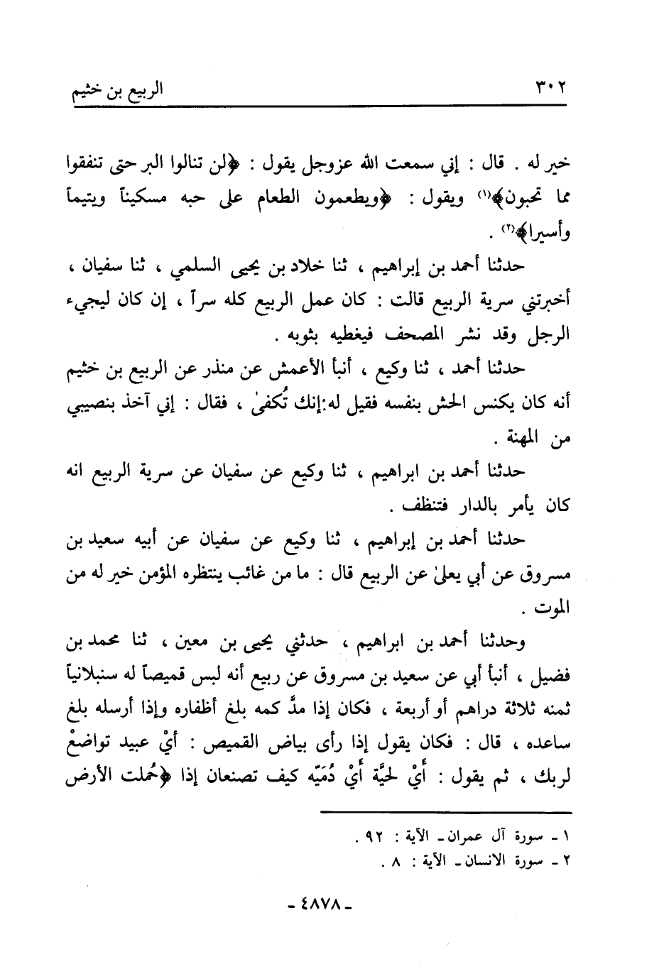 حدثنا أحمد بن إبراهيم، ثنا خلاد بن يحيى السلمي، ثنا سفيان، أخبرتني سرية الربيع قالت: كان عمل الربيع كله سرا، إن كان ليجيء الرجل وقد نشر المصحف فيغطيه بثوبه.