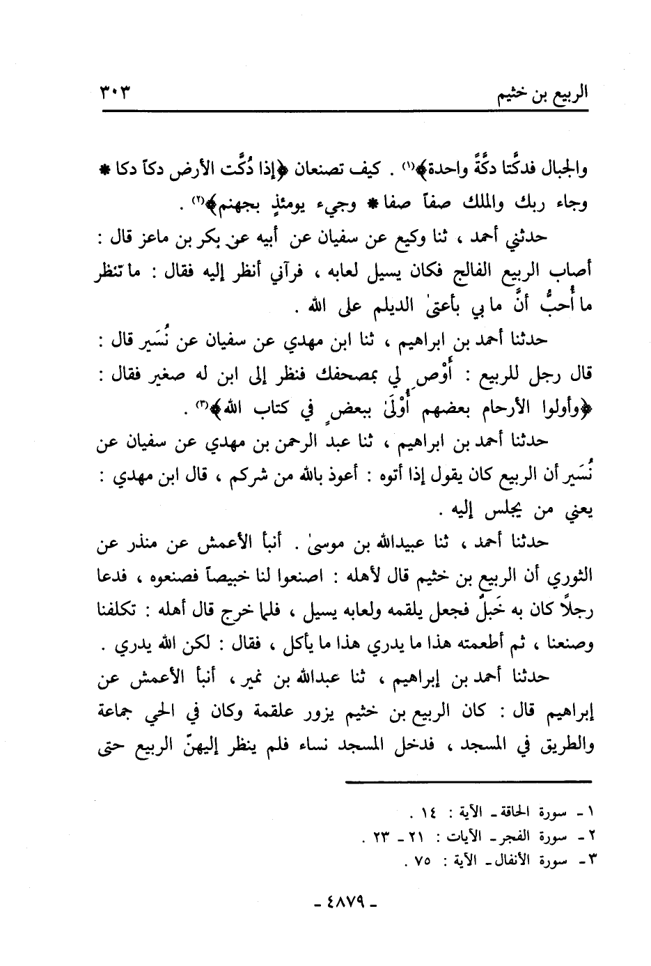 حدثنا أحمد بن إبراهيم، ثنا عَبْد الرَّحْمَنِ بْن مَهْدِيٍّ عَنْ سُفْيَان عَنْ نسير أن الربيع كان يقول إذا أتوه: أعوذ بالله من شركم، قال ابن مهدي: