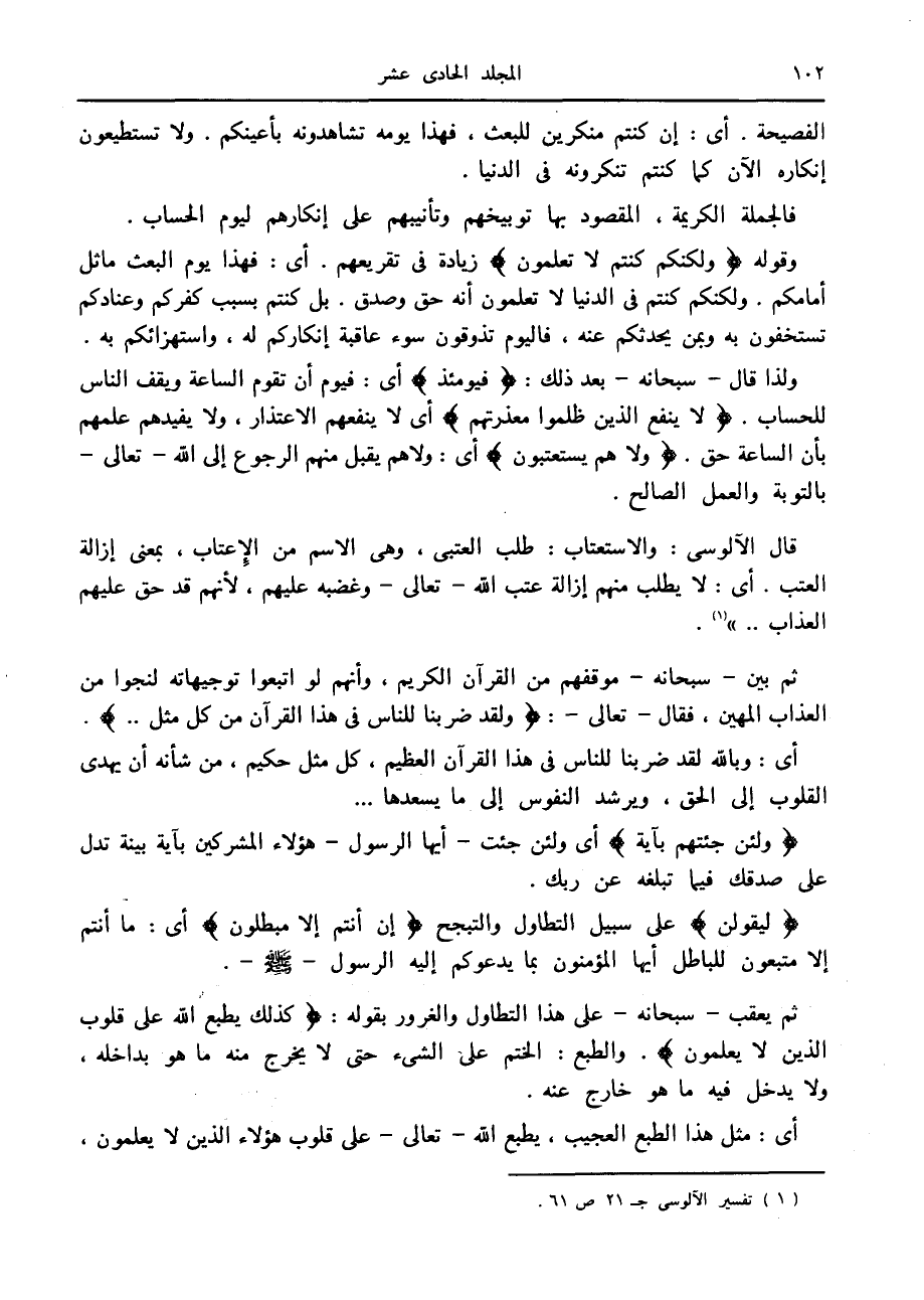 الفصيحة. اى: إن كنتم منكرين للبعث، فهذا يومه تشاهدونه بأعينكم. ولا تستطيعون إنكاره الآن كما كنتم تنكرونه في الدنيا.