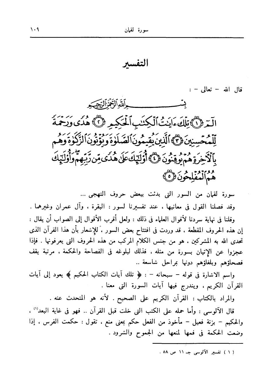 سورة لقمان من السور التي بدئت ببعض حروف التهجي ...