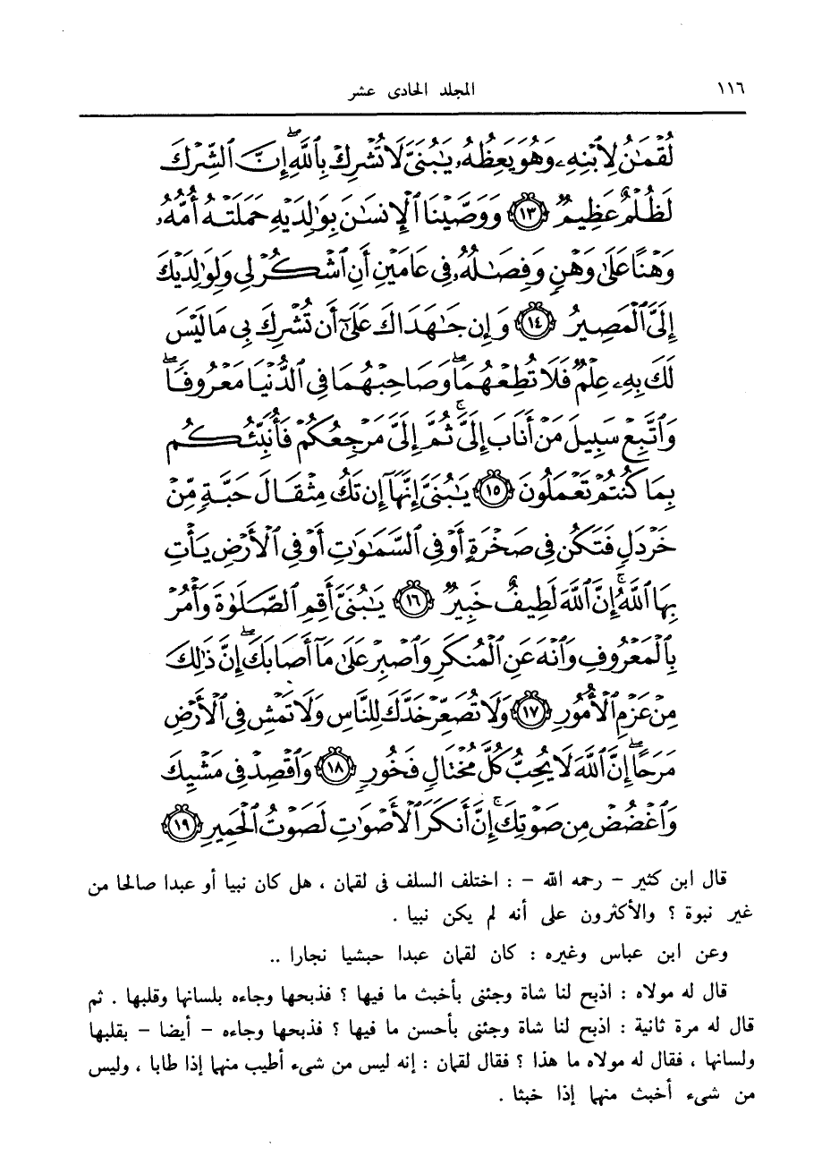 وعن ابن عباس وغيره: كان لقمان عبدا حبشيا نجارا..