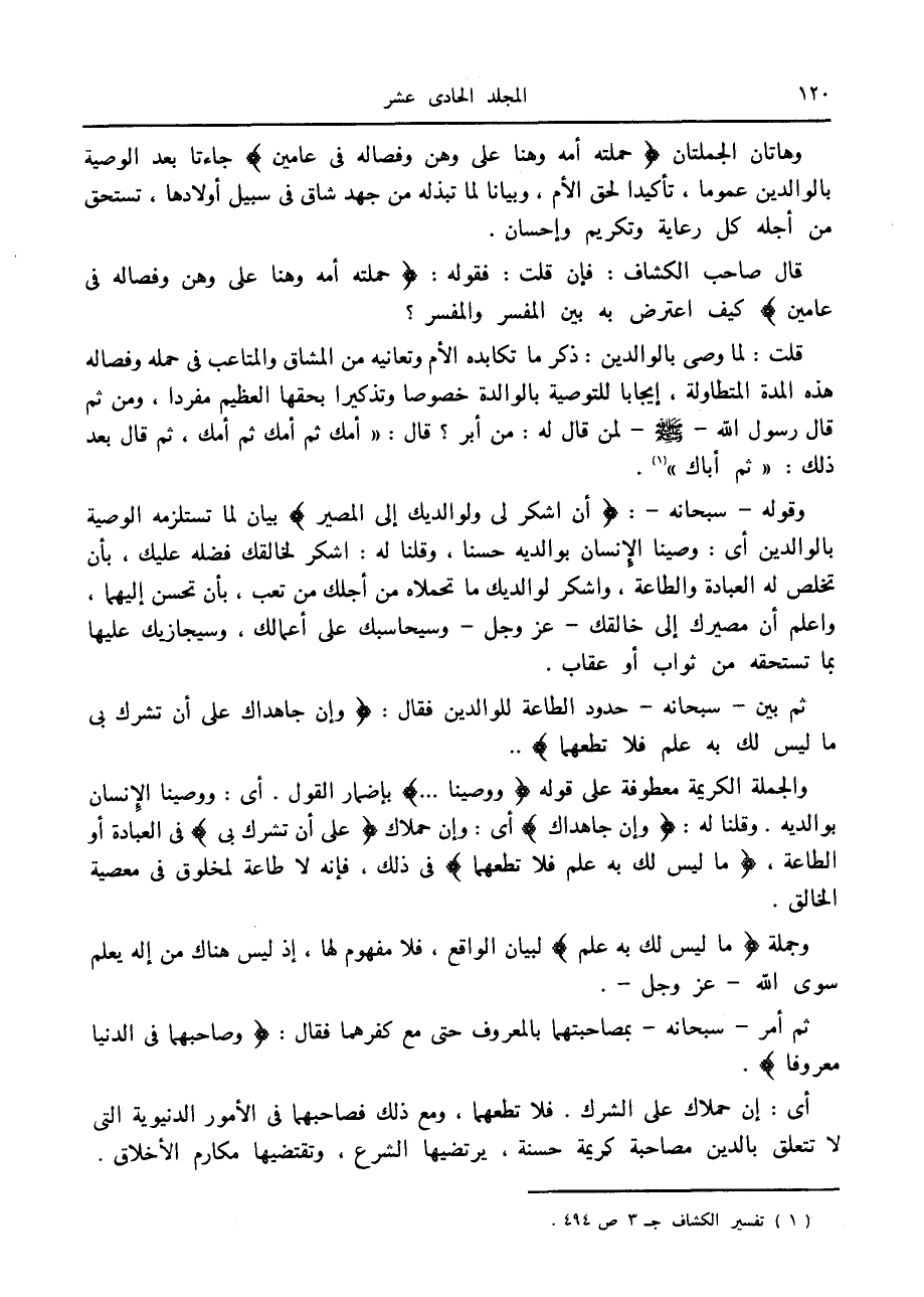 ثم بين- سبحانه- حدود الطاعة للوالدين فقال: وَإِنْ جاهَداكَ عَلى أَنْ تُشْرِكَ بِي ما لَيْسَ لَكَ بِهِ عِلْمٌ فَلا تُطِعْهُما..