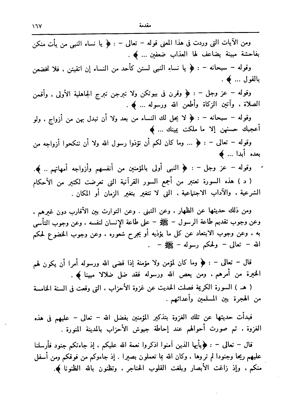 (هـ) السورة الكريمة فصلت الحديث عن غزوة الأحزاب، التي وقعت في السنة الخامسة من الهجرة بين المسلمين وأعدائهم.