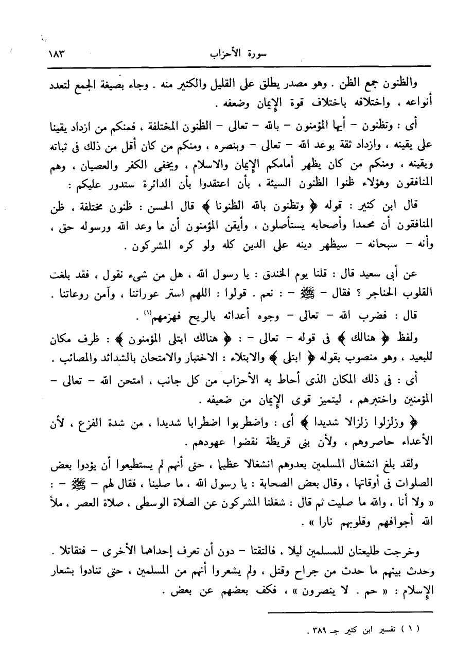 قال ابن كثير: قوله وَتَظُنُّونَ بِاللَّهِ الظُّنُونَا قال الحسن: ظنون مختلفة، ظن المنافقون أن محمدا وأصحابه يستأصلون، وأيقن المؤمنون أن ما وعد الله ورسوله حق، وأنه- سبحانه- سيظهر دينه على الدين كله ولو كره المشركون.