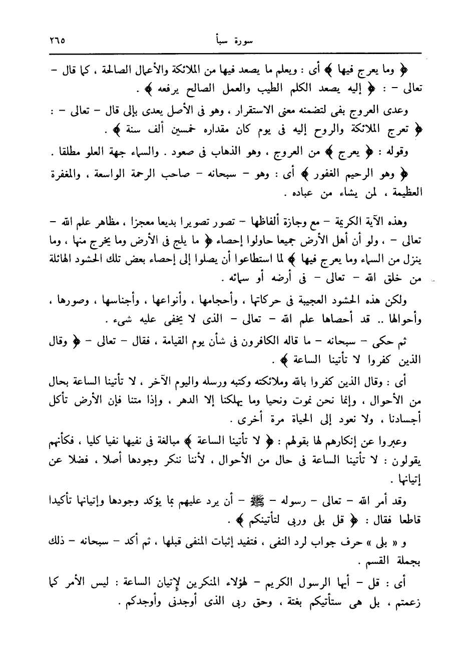 وقد أمر الله- تعالى- رسوله صلى الله عليه وسلم أن يرد عليهم بما يؤكد وجودها وإتيانها تأكيدا قاطعا فقال: قُلْ بَلى وَرَبِّي لَتَأْتِيَنَّكُمْ.