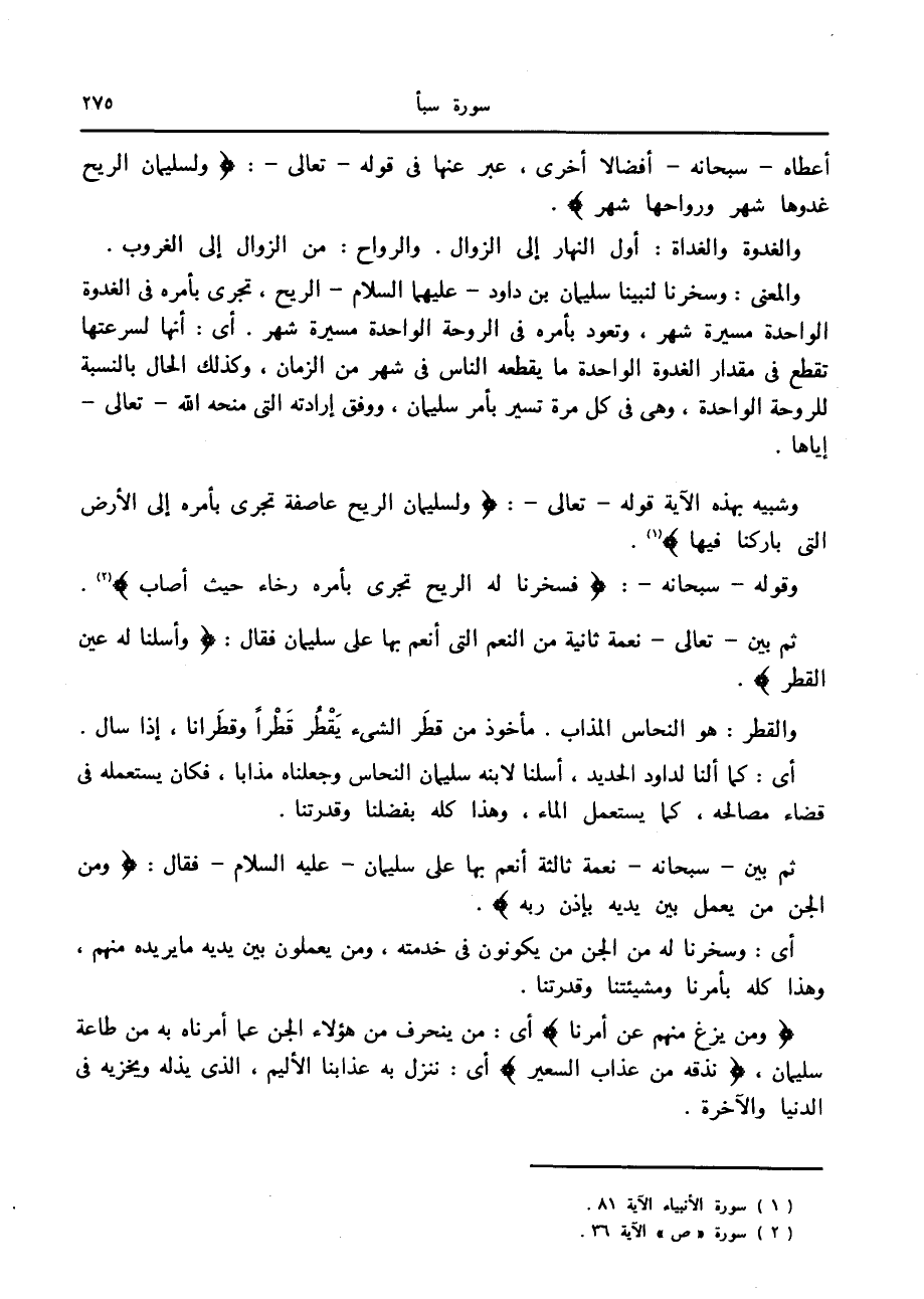 (1) سورة الأنبياء الآية 81.