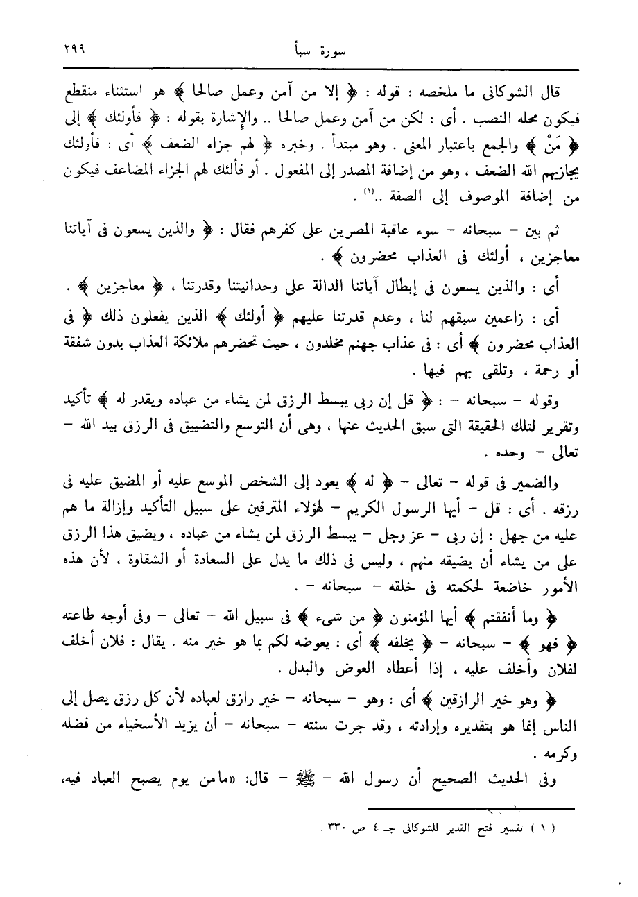 (1) تفسير فتح القدير للشوكانى ج 4 ص 330.