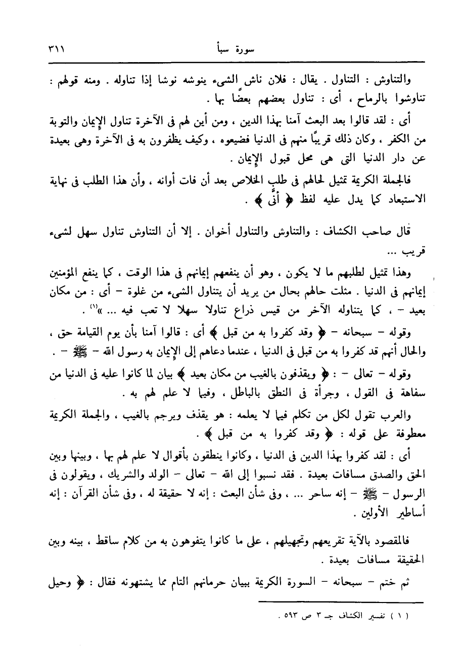 قال صاحب الكشاف: والتناوش والتناول أخوان. إلا أن التناوش تناول سهل لشيء قريب ...