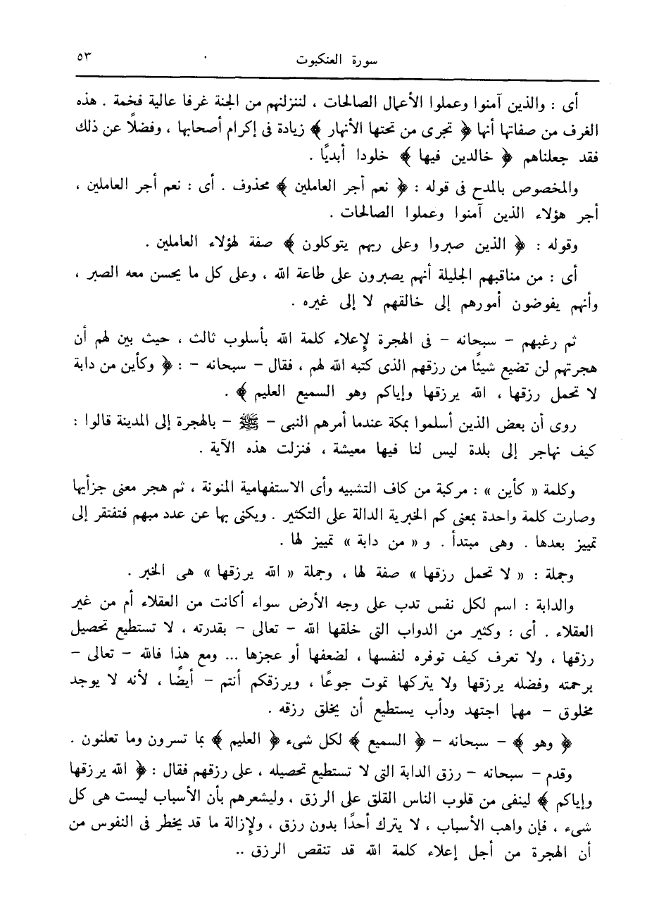 ثم رغبهم- سبحانه- في الهجرة لإعلاء كلمة الله بأسلوب ثالث، حيث بين لهم أن هجرتهم لن تضيع شيئا من رزقهم الذي كتبه الله لهم، فقال- سبحانه-: وَكَأَيِّنْ مِنْ دَابَّةٍ لا تَحْمِلُ رِزْقَهَا، اللَّهُ يَرْزُقُها وَإِيَّاكُمْ وَهُوَ السَّمِيعُ الْعَلِيمُ.