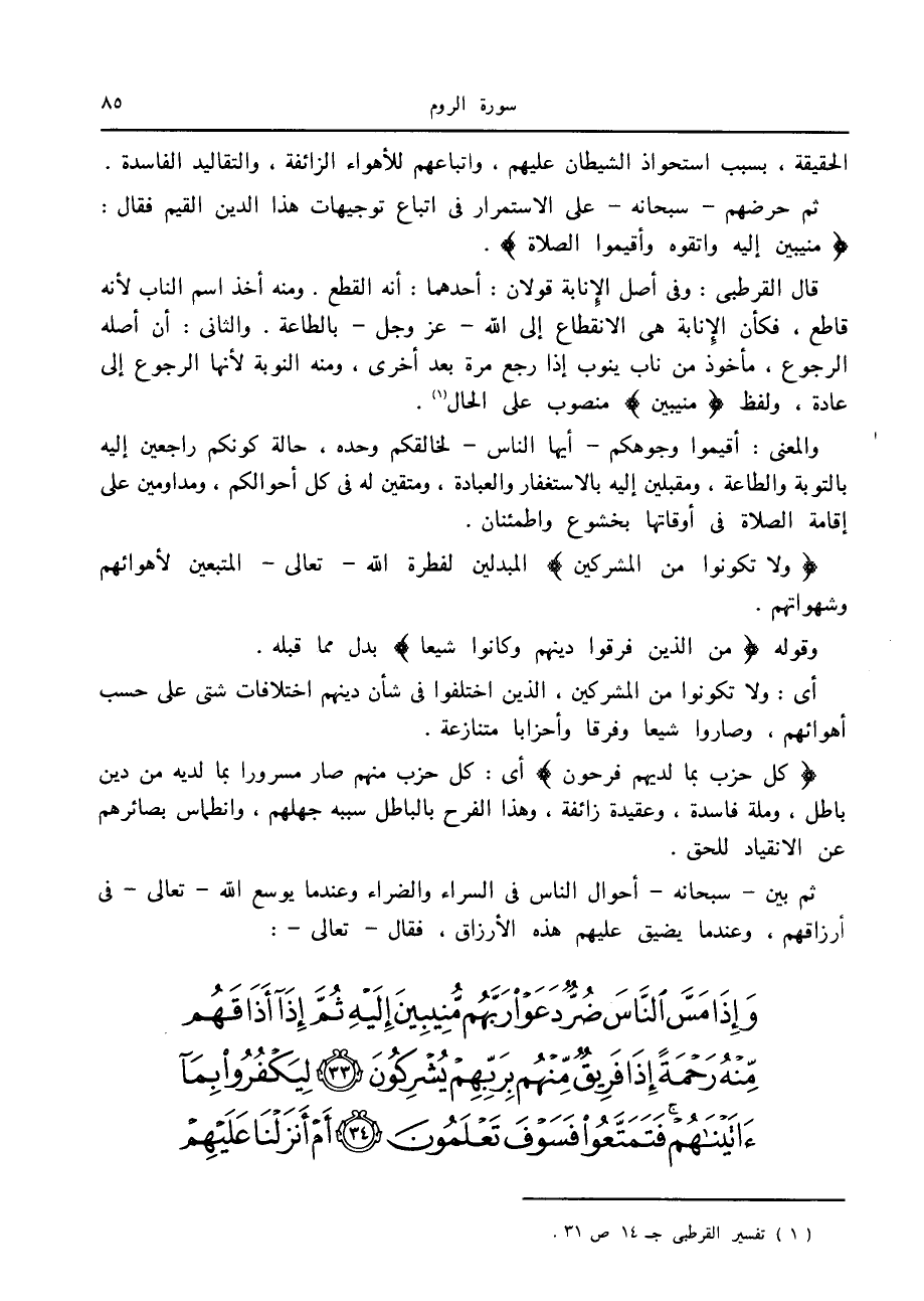 مُنِيبِينَ إِلَيْهِ وَاتَّقُوهُ وَأَقِيمُوا الصَّلاةَ.