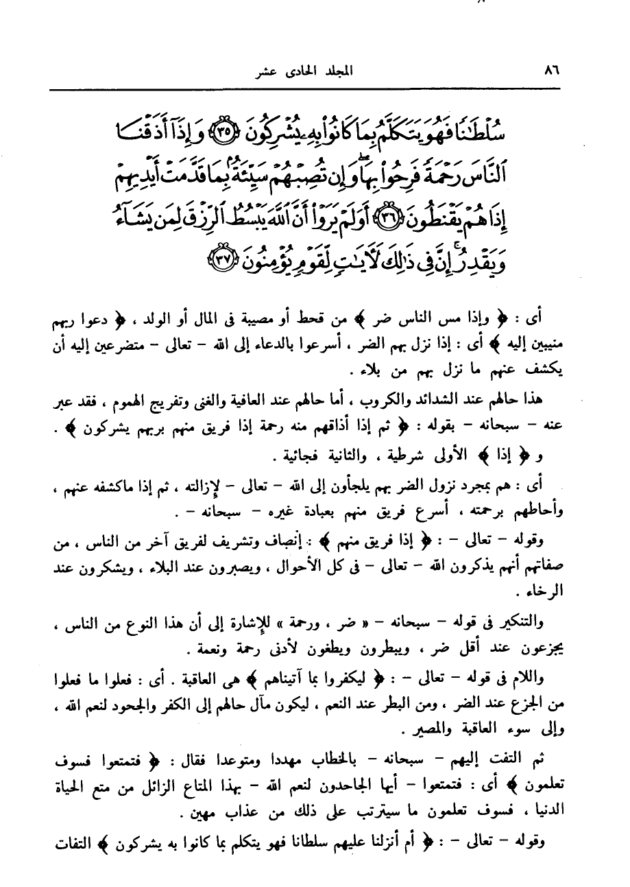 هذا حالهم عند الشدائد والكروب، أما حالهم عند العافية والغنى وتفريج الهموم، فقد عبر عنه- سبحانه- بقوله: ثُمَّ إِذا أَذاقَهُمْ مِنْهُ رَحْمَةً إِذا فَرِيقٌ مِنْهُمْ بِرَبِّهِمْ يُشْرِكُونَ.