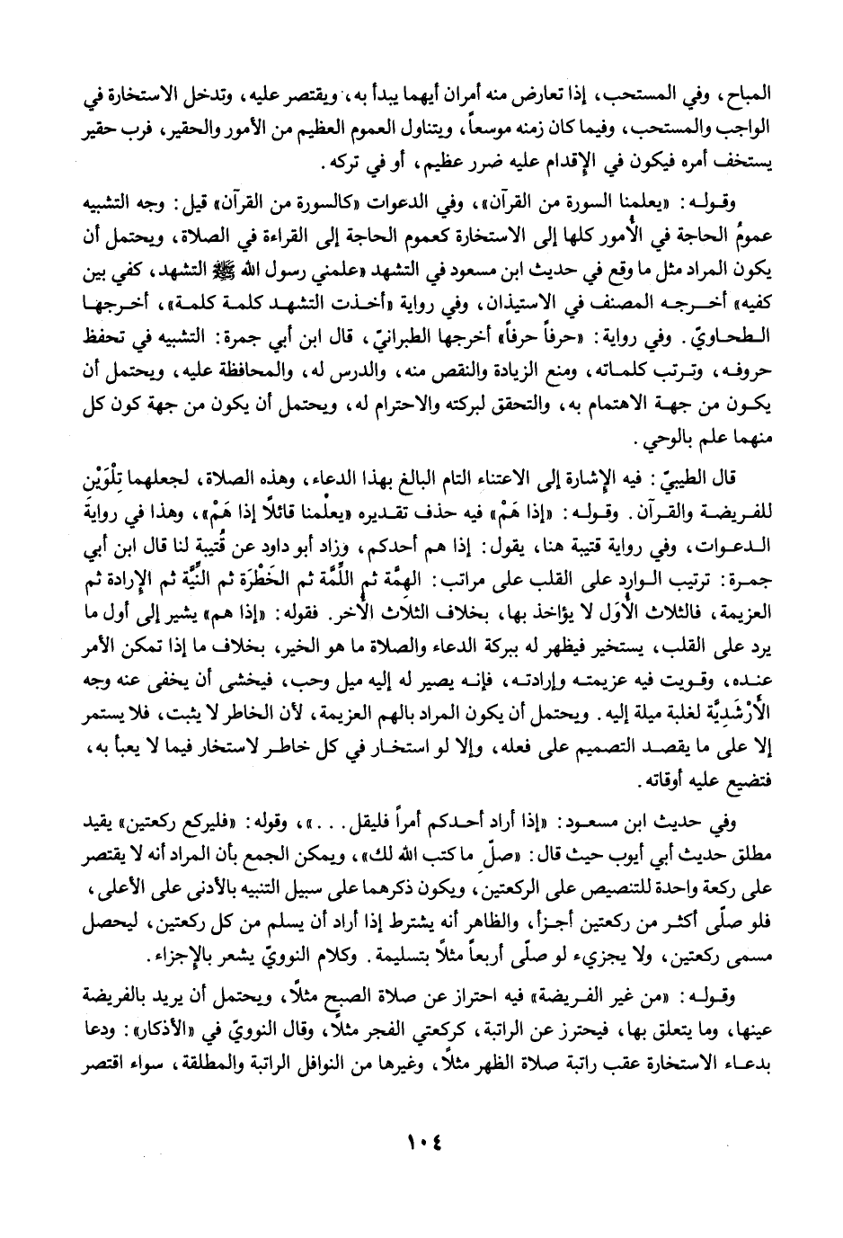 وفي حديث ابن مسعود: "إذا أراد أحدكم أمرًا فليقل ... "، وقوله: "فليركع ركعتين" يقيد مطلق حديث أبي أيوب حيث قال: "صلِّ ما كتب الله لك"، ويمكن الجمع بأن المراد أنه لا يقتصر على ركعة واحدة للتنصيص على الركعتين، ويكون ذكرهما على سبيل التنبيه بالأدنى على الأعلى، فلو صلّى أكثر من ركعتين أجزأ، والظاهر أنه يشترط إذا أراد أن يسلم من كل ركعتين، ليحصل مسمى ركعتين، ولا يجزىء لو صلّى أربعًا مثلًا بتسليمة. وكلام النوويّ يشعر بالإجزاء.