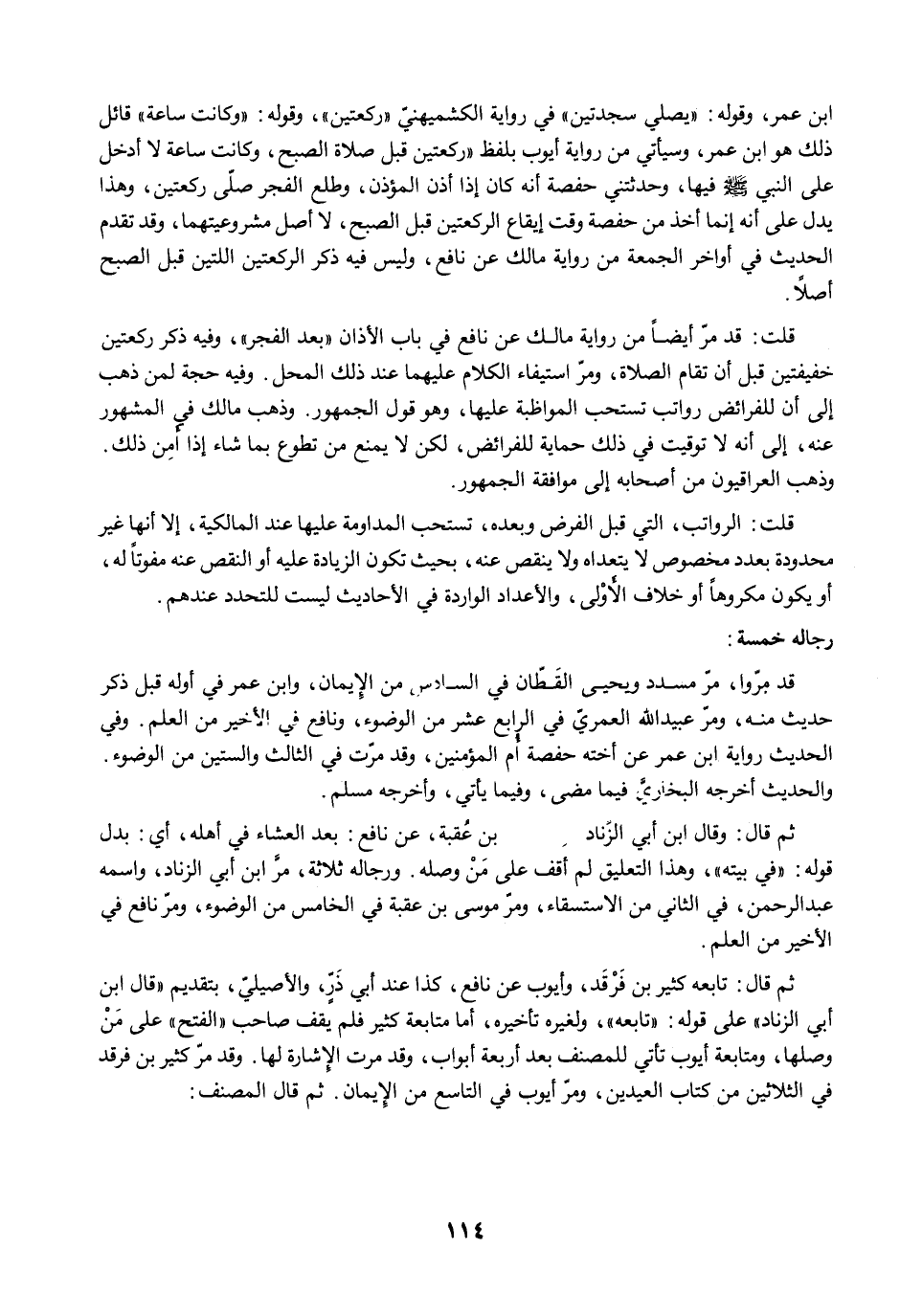 ثم قال: وقَالَ ابْنُ أَبِي الزِّنَادِ عَنْ مُوسَى بْنِ عُقْبَةَ عَنْ نَافِعٍ: بَعْدَ الْعِشَاءِ فِي أَهْلِهِ، أي: بدل قوله: "في بيته"، وهذا التعليق لم أقف على مَنْ وصله. ورجاله ثلاثة، مرَّ ابن أبي الزناد، واسمه عبد الرحمن، في الثاني من الاستسقاء، ومرّ موسى بن عقبة في الخامس من الوضوء، ومرَّ نافع في الأخير من العلم.