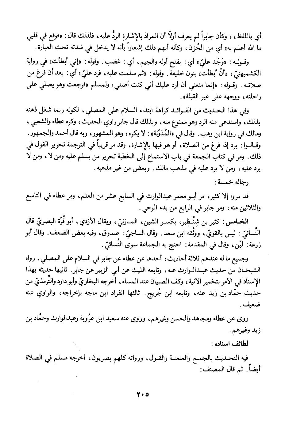 وفي هذا الحديث من الفوائد كراهة ابتداء السلام على المصلي، لكونه ربما شغل ذهنه بذلك، واستدعى منه الرد وهو ممنوع منه، وبذلك قال جابر راوي الحديث، وكره عطاء والشعبي، ومالك في رواية ابن وهب. وقال في "المُدَوّنة": لا يكره، وهو المشهور، وبه قال أحمد والجمهور. وقالوا: يرد إذا فرغ من الصلاة، أو هو فيها بالإشارة، وقد مرَّ قريبًا في الترجمة تحرير القول في ذلك. ومرَّ في كتاب الجمعة في باب الاستماع إلى الخطبة تحرير من يسلم عليه ومن لا، ومن لا يرد عليه، ومن لا يرد عليه في مذهب مالك. وبعض من غير مذهبه.