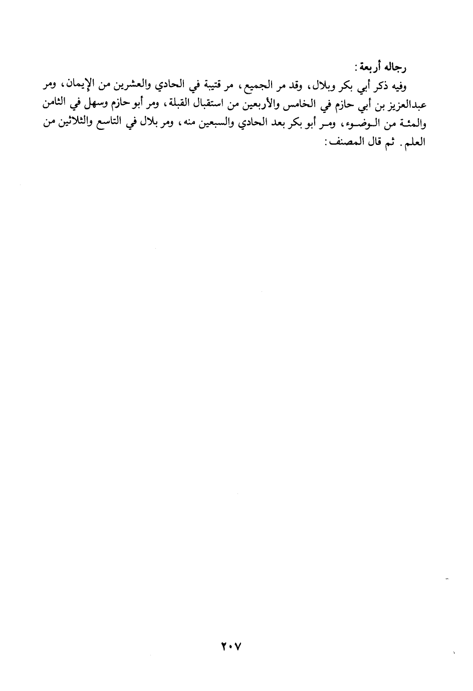 وفيه ذكر أبي بكر وبلال، وقد مرَّ الجميع، مرَّ قتيبة في الحادي والعشرين من الإيمان، ومرَّ عبد العزيز بن أبي حازم في الخامس والأربعين من استقبال القبلة، ومرَّ أبو حازم وسهل في الثامن والمئة من الوضوء، ومرَّ أبو بكر بعد الحادي والسبعين منه، ومرَّ بلال في التاسع والثلاثين من العلم. ثم قال المصنف: