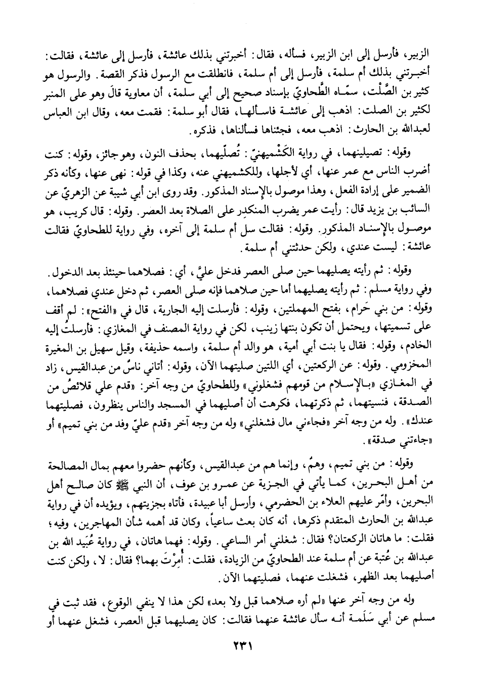 وقوله: من بني تميم، وهمٌ، وإنما هم من عبد القيس، وكأنهم حضروا معهم بمال المصالحة من أهل البحرين، كما يأتي في الجزية عن عمرو بن عوف، أن النبي -صلى الله عليه وسلم- كان صالح أهل البحرين، وأمّر عليهم العلاء بن الحضرمي، وأرسل أبا عبيدة، فأتاه بجزيتهم، ويؤيده أن في رواية عبد الله بن الحارث المتقدم ذكرها، أنه كان بعث ساعيًا، وكان قد أهمه شأن المهاجرين، وفيه؛ فقلت: ما هاتان الركعتان؟ فقال: شغلني أمر الساعي. وقوله: فهما هاتان، في رواية عُبَيد الله بن عبد الله بن عُتبة عن أم سلمة عند الطحاوي من الزيادة، فقلت: أُمِرْتَ بهما؟ فقال: لا، ولكن كنت أصليهما بعد الظهر، فشغلت عنهما، فصليتهما الآن.