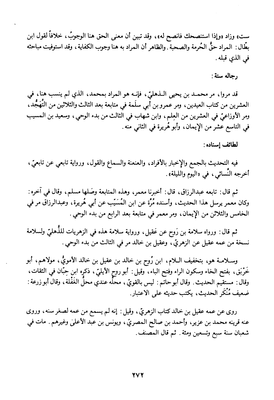 ثم قال: ورواه سلامة بن رَوح عن عَقيل، ورواية سلامة هذه في الزهريات للذُّهليّ ولسلامة نسخة من عمه عقيل عن الزهريّ، وعقيل بن خالد مرَّ في الثالث من بدء الوحي.