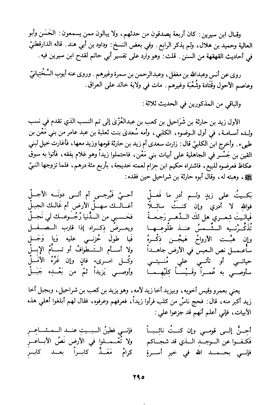 يعني بعمرو وقيس أخويه، وبيزيد أخا زيد لأمه، وهو يزيد بن كعب بن شراحيل، وبجبل أخا زيد أكبر منه، قال: فحج ناسٌ من كلب فرأوا زيدًا، فعرفهم وعرفوه، فقال لهم أبلغوا أهلي هذه الأبيات، فإني أعلم أنهم قد جزعوا علي: