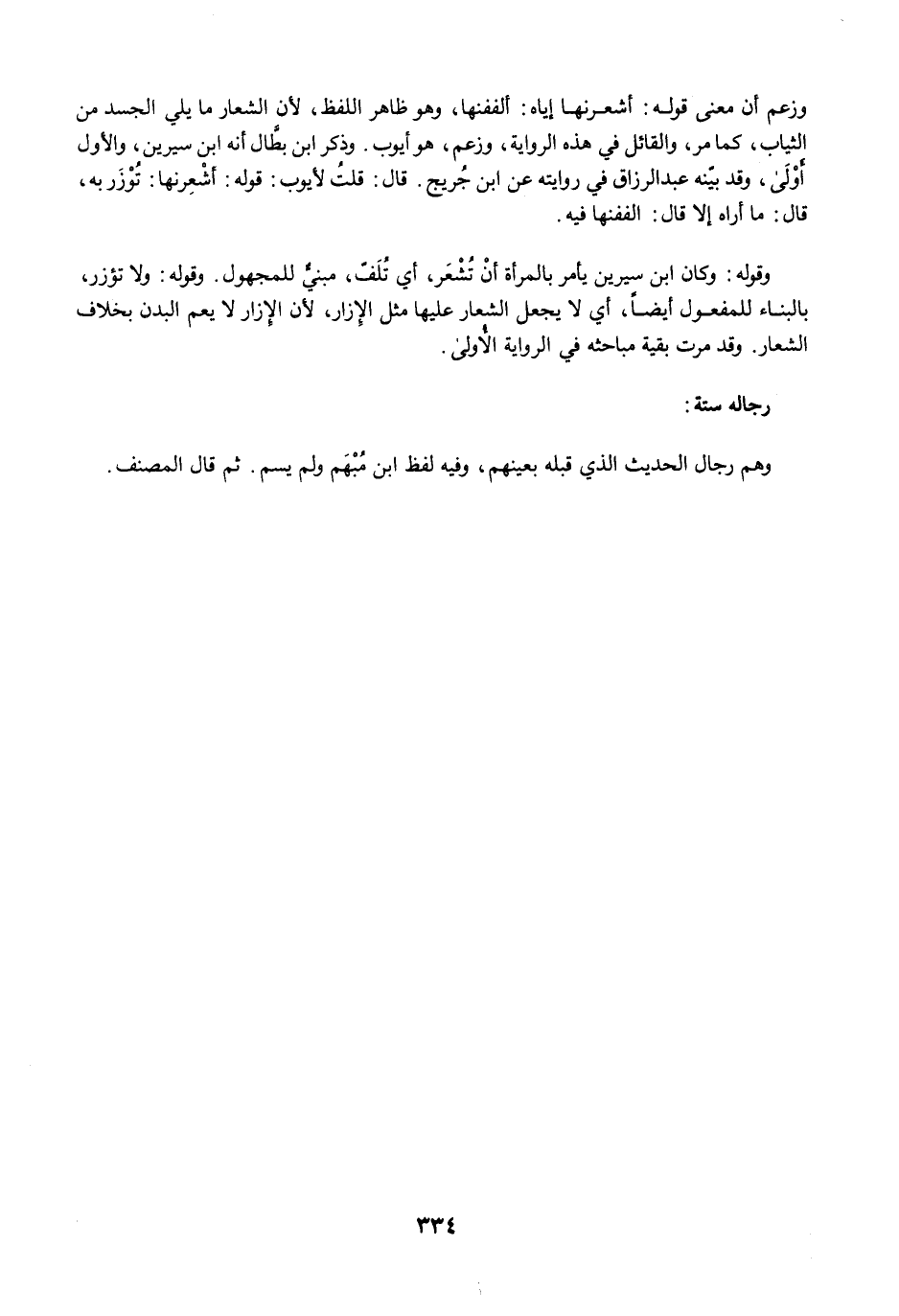وقوله: وكان ابن سيرين يأمر بالمرأة أنْ تُشْعَر، أي تُلَفّ، مبنيٌّ للمجهول. وقوله: ولا تؤزر، بالبناء للمفعول أيضًا، أي لا يجعل الشعار عليها مثل الإِزار, لأن الإزار لا يعم البدن بخلاف الشعار. وقد مرت بقية مباحثه في الرواية الأُولى.