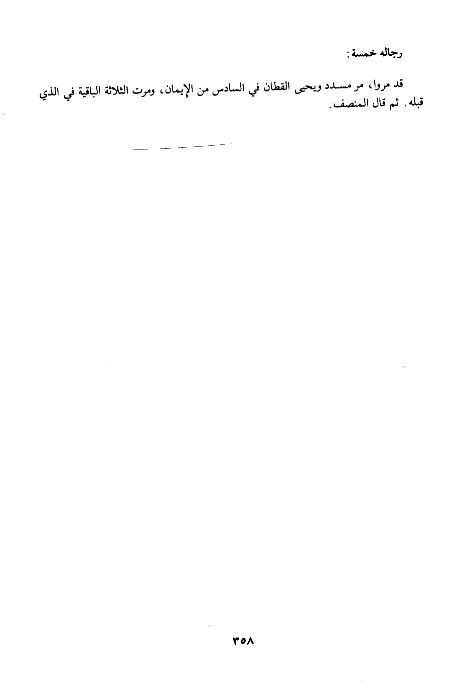 قد مرّوا، مرَّ مسدد ويحيى القطان في السادس من الإِيمان, ومرت الثلاثة الباقية في الذي قبله. ثم قال المنصف: