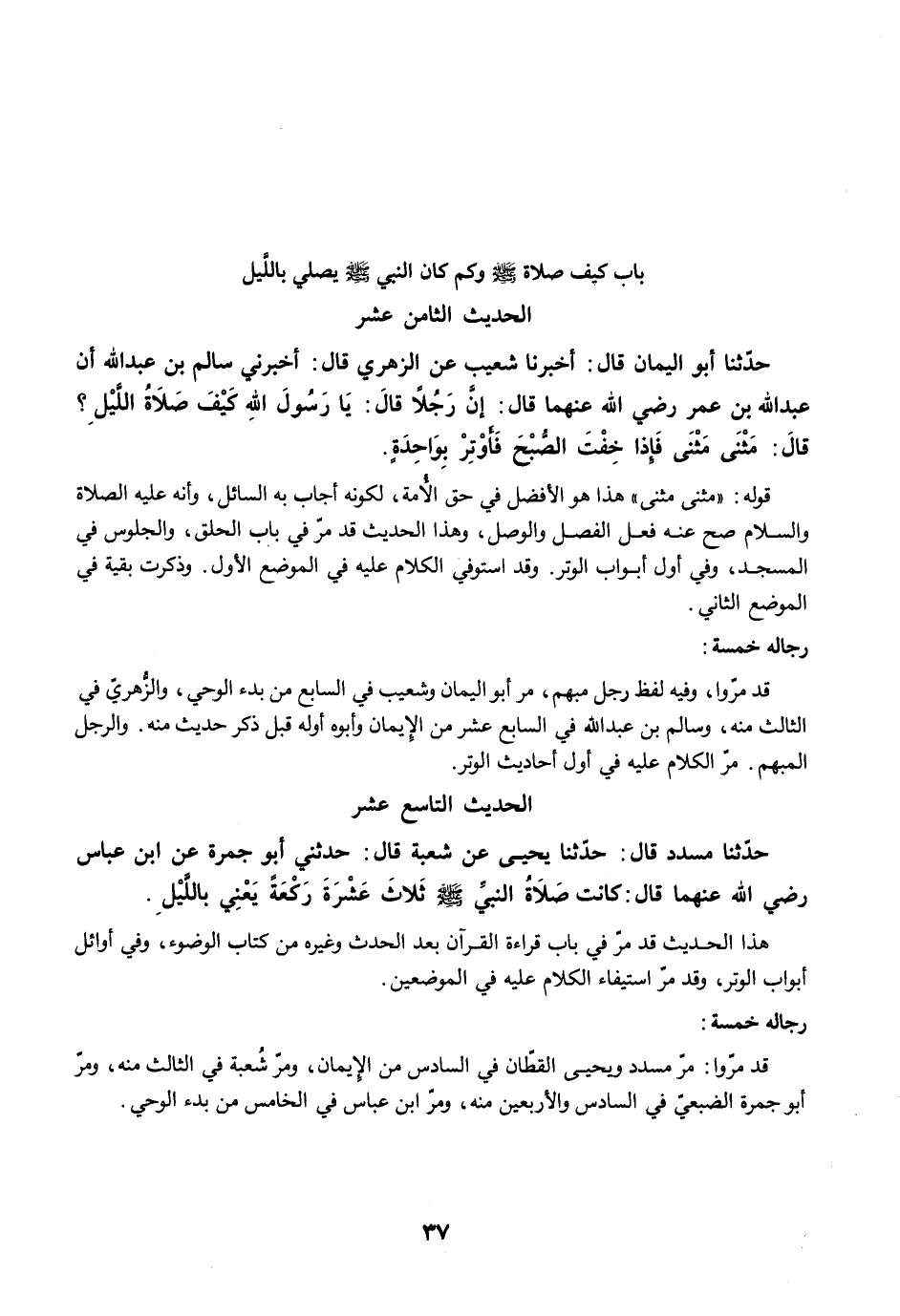 قد مرّوا: مرّ مسدد ويحيى القطّان في السادس من الإيمان، ومرّ شُعبة في الثالث منه، ومرّ أبو جمرة الضبعىّ في السادس والأربعين منه، ومرّ ابن عباس في الخامس من بدء الوحي.