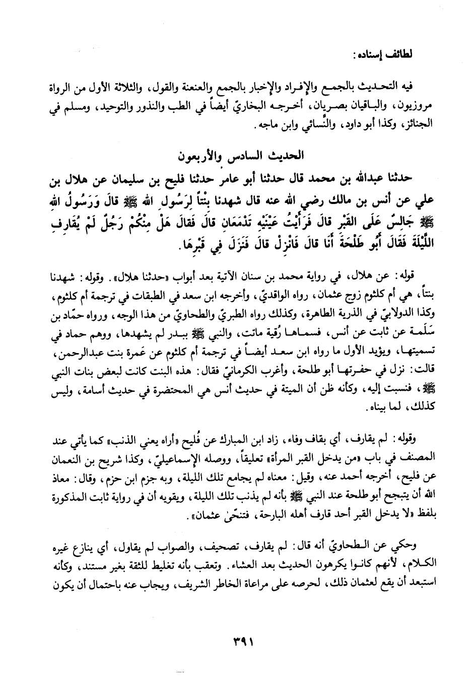 فيه التحديث بالجمع والإفراد والإخبار بالجمع والعنعنة والقول، والثلاثة الأول من الرواة مروزيون، والباقيان بصريان، أخرجه البخاريّ أيضًا في الطب والنذور والتوحيد، ومسلم في الجنائز، وكذا أبو داود، والنَّسائي وابن ماجه.