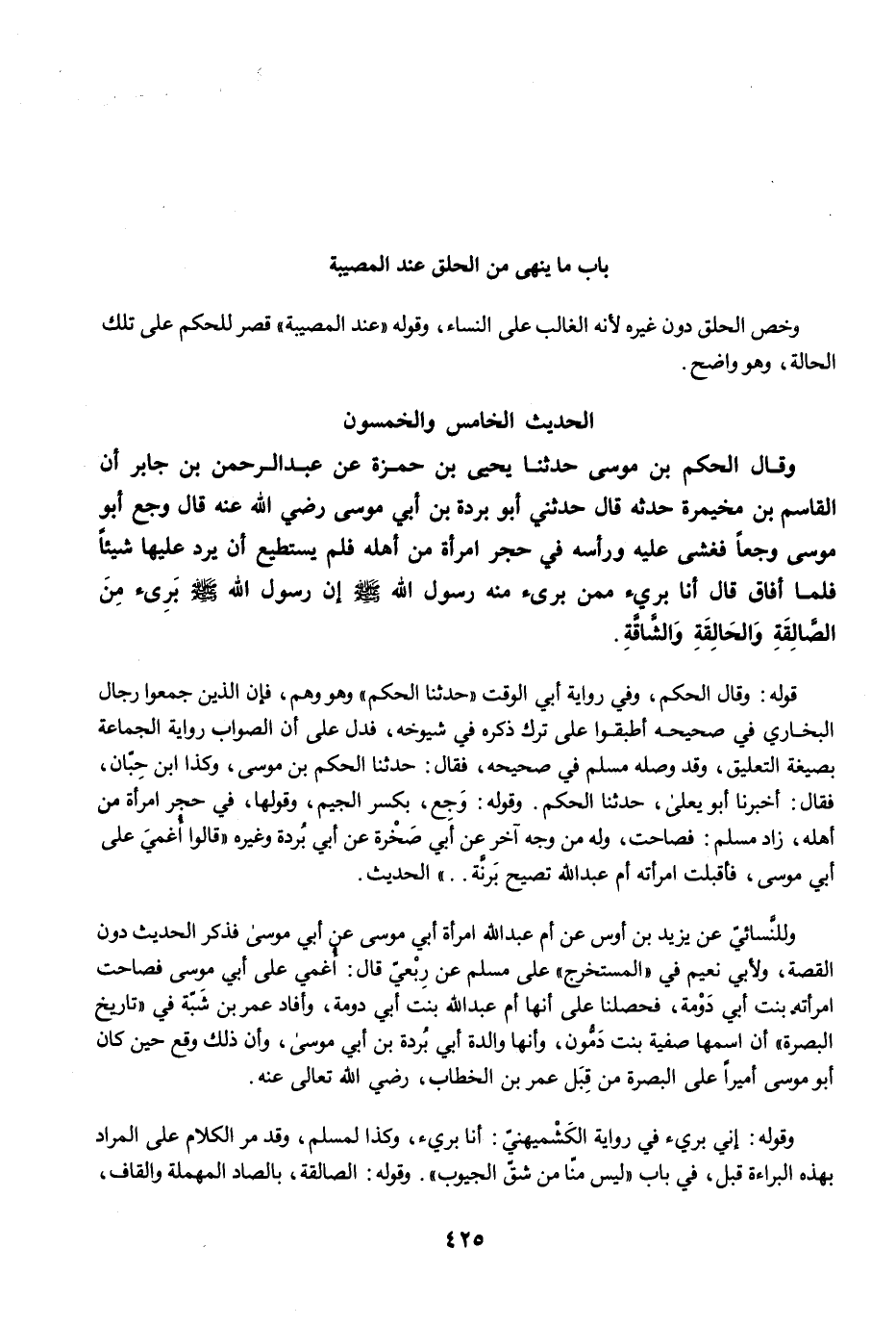 قوله: وقال الحكم، وفي رواية أبي الوقت "حدثنا الحكم" وهو وهم، فإن الذين جمعوا رجال البخاري في صحيحه أطبقوا على ترك ذكره في شيوخه، فدل على أن الصواب رواية الجماعة بصيغة التعليق، وقد وصله مسلم في صحيحه, فقال: حدثنا الحكم بن موسى، وكذا ابن حِبّان، فقال: أخبرنا أبو يعلى، حدثنا الحكم. وقوله: وَجِع، بكسر الجيم، وقولها، في حجر امرأة من أهله، زاد مسلم: فصاحت، وله من وجه آخر عن أبي صَخْرة عن أبي بُردة وغيره "قالوا أُغميَ على أبي موسى، فأقبلت امرأته أم عبد الله تصيح بَرنَّة .. " الحديث.