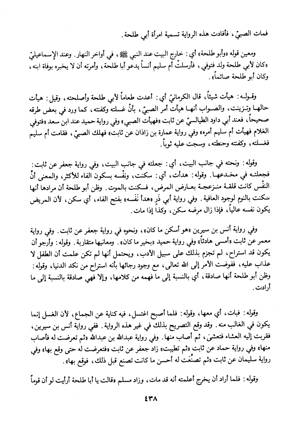 فمات الصبيّ، فأفادت هذه الرواية تسمية امرأة أبي طلحة.