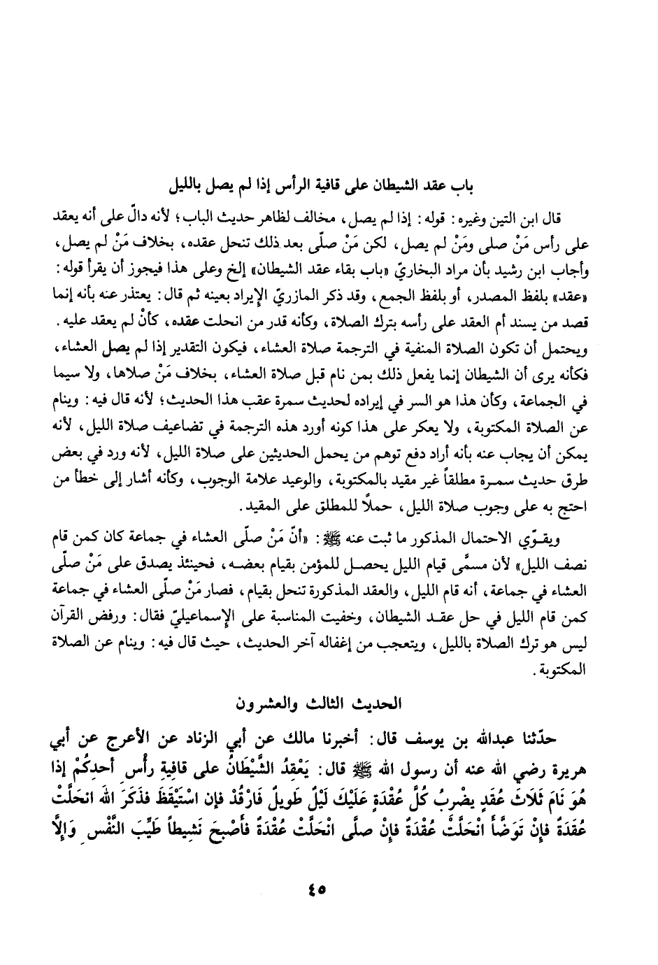 باب عقد الشيطان على قافية الرأس إذا لم يصل بالليل