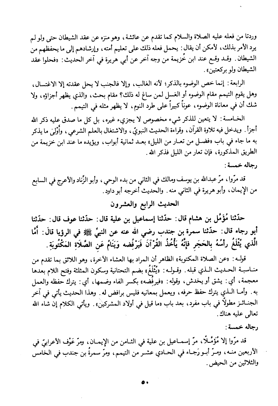 قد مرّوا إلا مُؤمَّلًا، مرّ إسماعيل بن علية في الثامن من الإيمان، ومرّ عَوْف الأعرابيّ في الأربعين منه، ومرّ أبو رَجاء في الحادي عشر من التيمم، ومرّ سمرةُ بن جندب في الخامس والثلاثين من الحيض.
