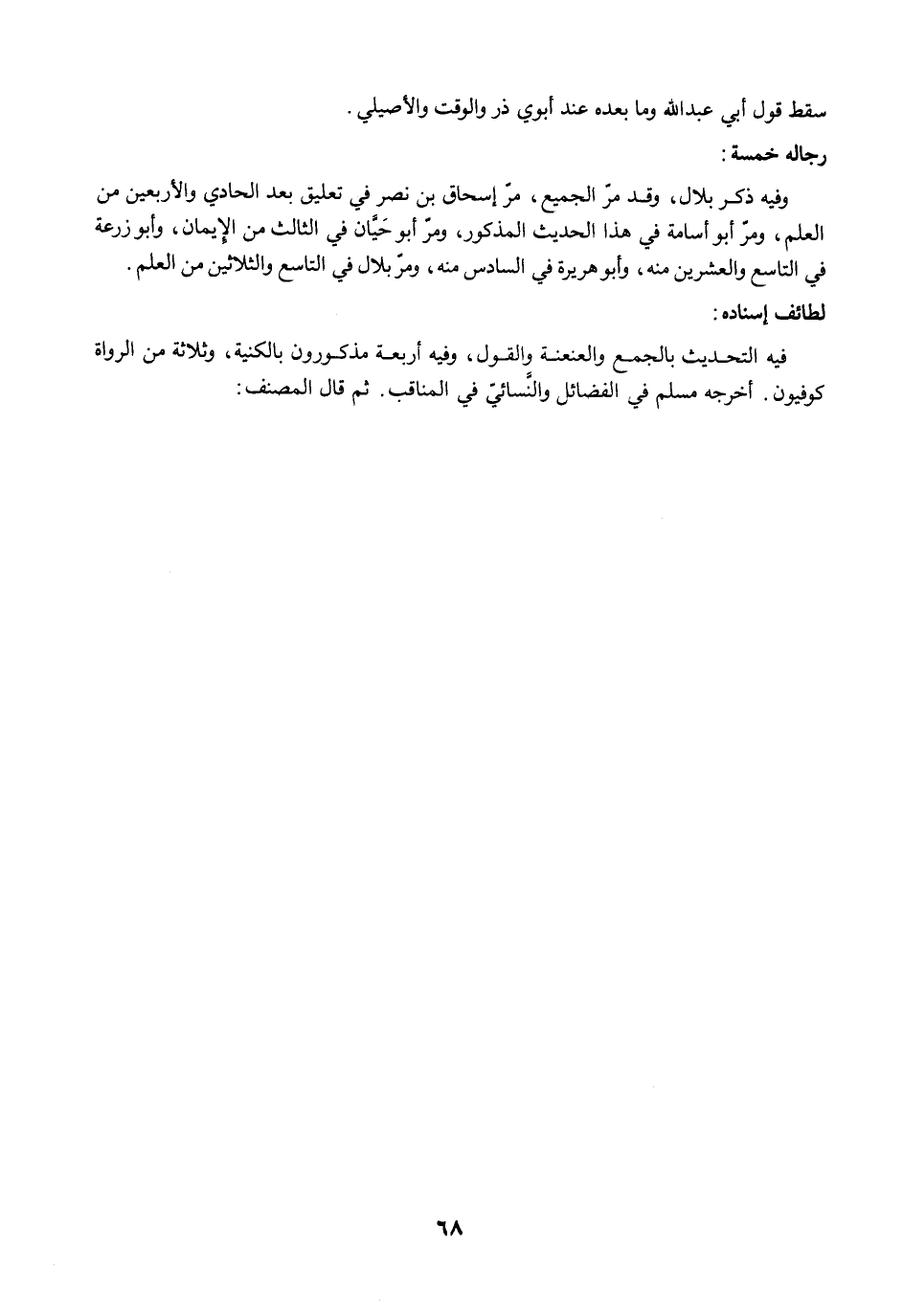 فيه التحديث بالجمع والعنعنة والقول، وفيه أربعة مذكورون بالكنية، وثلاثة من الرواة كوفيون. أخرجه مسلم في الفضائل والنَّسائيّ في المناقب. ثم قال المصنف: