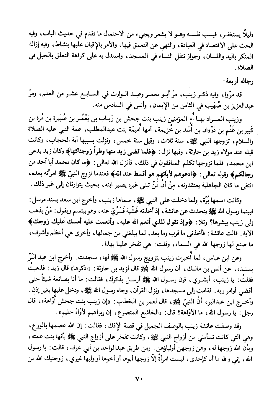 قد مرّوا، وفيه ذكر زينب، مرّ أبو معمر وعبد الوارث في السابع عشر من العلم، ومرّ عبد العزيز بن صُهَيب في الثامن من الإيمان، وأنس في السادس منه.