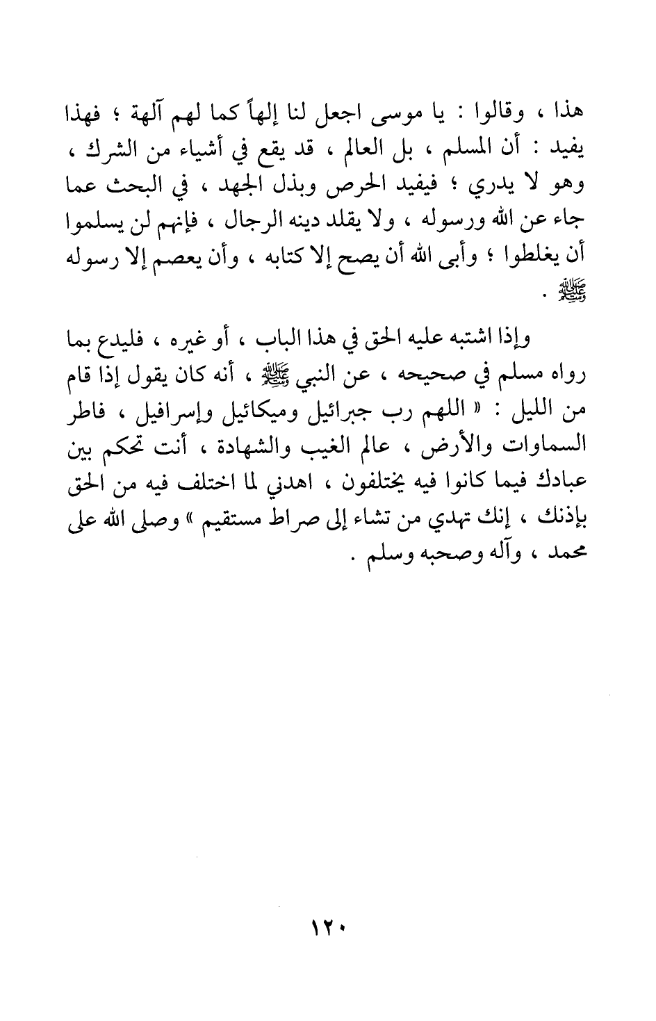 وإذا اشتبه عليه الحق في هذا الباب أو غيره فليدع بما رواه مسلم في صحيحه، عن النبي صلى الله عليه وسلم أنه كان يقول إذا قام من الليل: " اللهم رب جبرائيل وميكائيل وإسرافيل، فاطر السماوات والأرض، عالم الغيب والشهادة، أنت تحكم بين عبادك فيما كانوا فيه يختلفون، اهدني لما اختلف فيه من الحق بإذنك؛ إنك تهدي من تشاء إلى صراط مستقيم " 1 وصلى الله على محمد، وآله وصحبه وسلم.