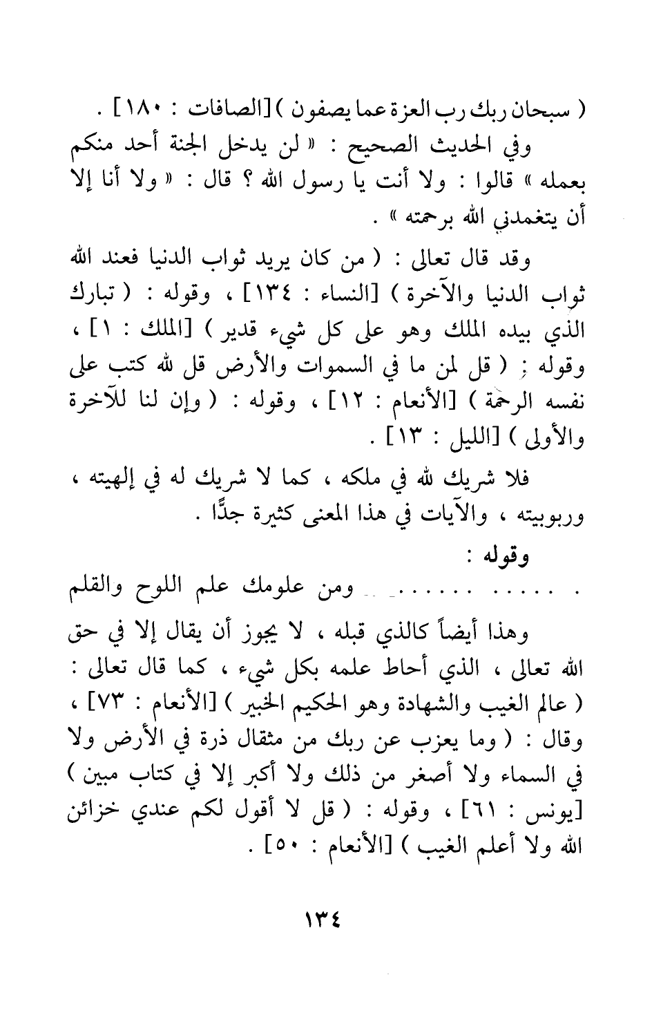وقد قال تعالى: {مَنْ كَانَ يُرِيدُ ثَوَابَ الدُّنْيَا فَعِنْدَ اللَّهِ ثَوَابُ الدُّنْيَا وَالْآخِرَةِ} [سورة النساء آية: 134] ، وقوله: {تَبَارَكَ الَّذِي بِيَدِهِ الْمُلْكُ وَهُوَ عَلَى كُلِّ شَيْءٍ قَدِيرٌ} [سورة الملك آية: 1] ، وقوله: {قُلْ لِمَنْ مَا فِي السَّمَاوَاتِ وَالْأَرْضِ قُلْ لِلَّهِ كَتَبَ عَلَى نَفْسِهِ الرَّحْمَةَ} [سورة الأنعام آية: 12] ، وقوله: {وَإِنَّ لَنَا لَلْآخِرَةَ وَالْأُولَى} [سورة الليل آية: 13] .