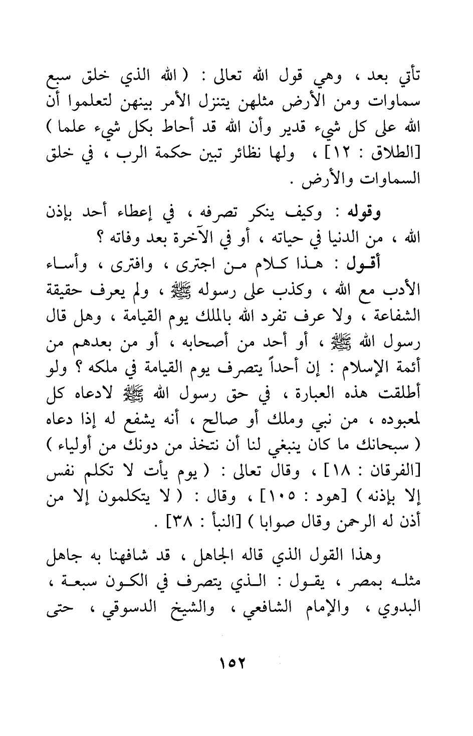 وهذا القول الذي قاله الجاهل، قد شافهنا به جاهل مثله بمصر، يقول: الذي يتصرف في الكون سبعة: البدوي، والإمام الشافعي، والشيخ الدسوقي، حتى